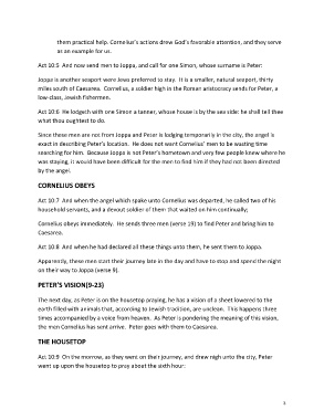 miles south of Caesarea. Cornelius, a soldier high in the Roman aristocracy sends for Peter, a