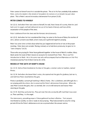 Peter has some time to think about what has just happened before he arrives at the prayer