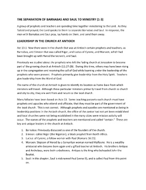 THE SEPARATION OF BARNABAS AND SAUL TO MINISTRY (1-3)