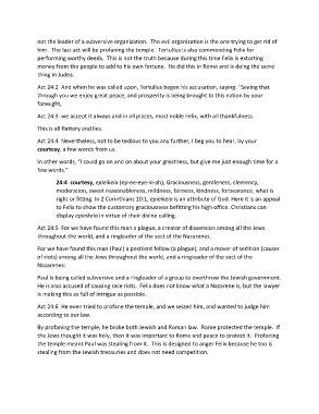 him. The last act will be profaning the temple. Tertullus is also commending Felix for