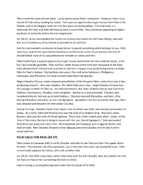 time of this story, Bernice is living in incest with her son, Herod Agrippa II.) Felix persuaded