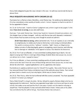 PAUL REQUESTS AN AUDIENCE WITH CAESAR (10-12)