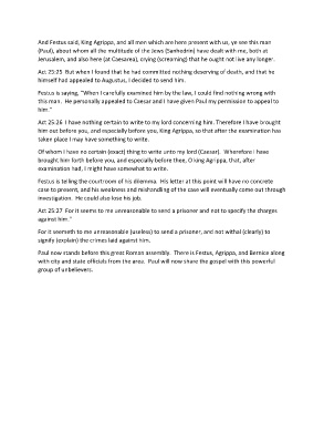 Paul now stands before this great Roman assembly. There is Festus, Agrippa, and Bernice along