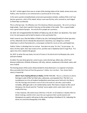 28:8-9 Paul’s Healing Ministry in Malta, DIVINE HEALING. Here is a reference to divine