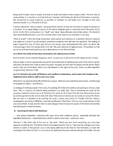 Being swift to hear, slow to speak, and slow to wrath are listed in their proper order. The first area of