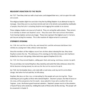 forgiven. Later, the Roman guard received salvation. Stephen’s prayer results in the salvation