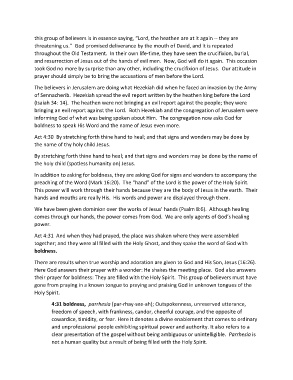 4:31 boldness, parrhesia (par-rhay-see-ah); Outspokenness, unreserved utterance,