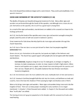 The deaths of Ananias and Sapphira bring great reverence for God. Many other signs and