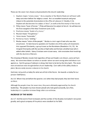 These are the seven men chosen and presented to the church leadership: