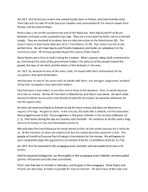 1, 3). Paul works during the day and teaches each Sabbath. He continues to do this until a large