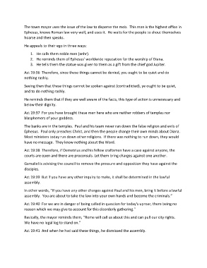 Ephesus, knows Roman law very well, and uses it. He waits for the people to shout themselves