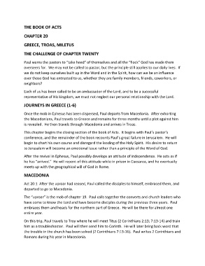 Once the mob in Ephesus has been dispersed, Paul departs from Macedonia. After exhorting