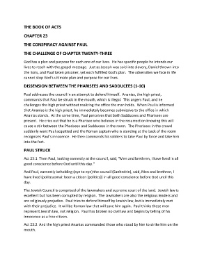 cause a stir between the Pharisees and Sadducees in the room. The Pharisees in the crowd