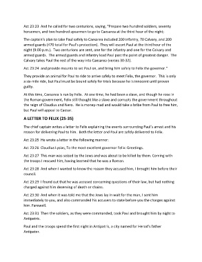 Calvary takes Paul the rest of the way into Caesarea (verses 30-32).
