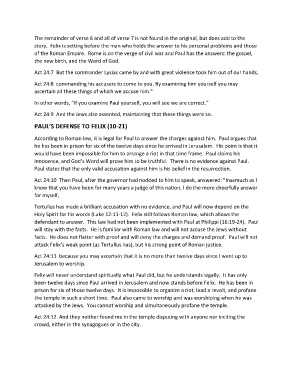 Holy Spirit for his words (Luke 12:11-12). Felix still follows Roman law, which allows the