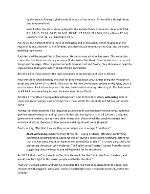 26:22 witnessing, martureo (mar-tt-reh-oh); Giving evidence, attesting, confirming,