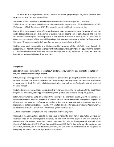 moment and even blame God for our troubles. These testings and temptations are those that would draw