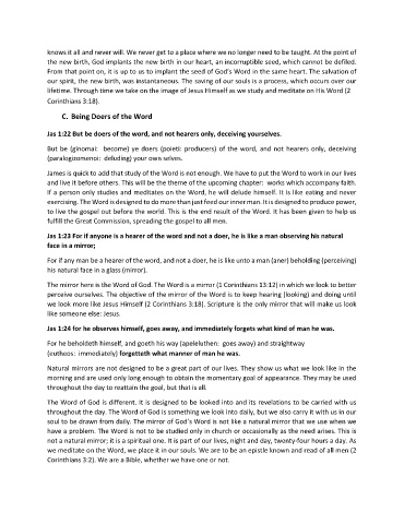 perceive ourselves. The objective of the mirror of the Word is to keep hearing (looking) and doing until