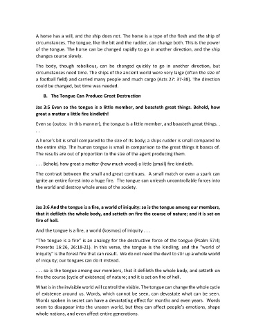 ignite an entire forest into a huge fire. The tongue can unleash uncontrollable forces into