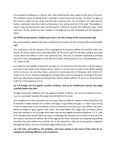 The example of patience is a farmer who, after planting the seed, waits for the time of harvest.